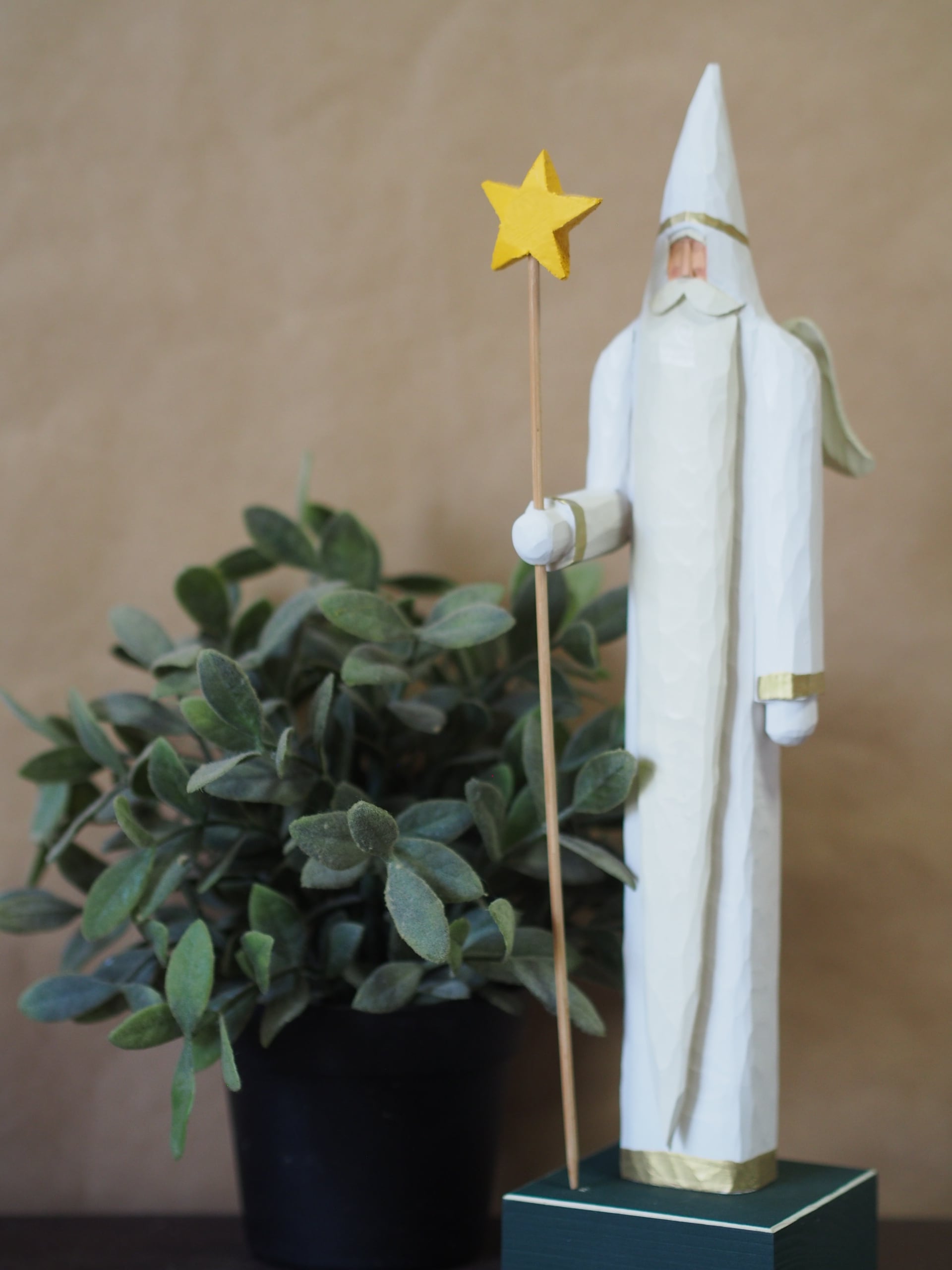 クリスマスの飾り付けや贈り物にぴったりなアイテムです。可愛らしい星を持ったサンタが、見る人にほんのりとした温かさを感じさせます