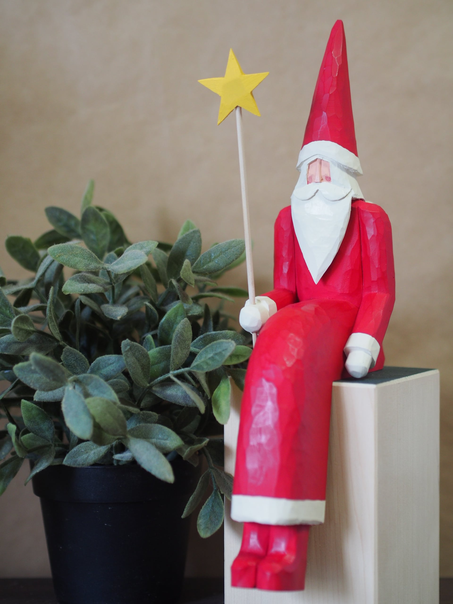 クリスマスの飾り付けや贈り物にぴったりなアイテムです。可愛らしい星を持ったサンタが、見る人にほんのりとした温かさを感じさせます
