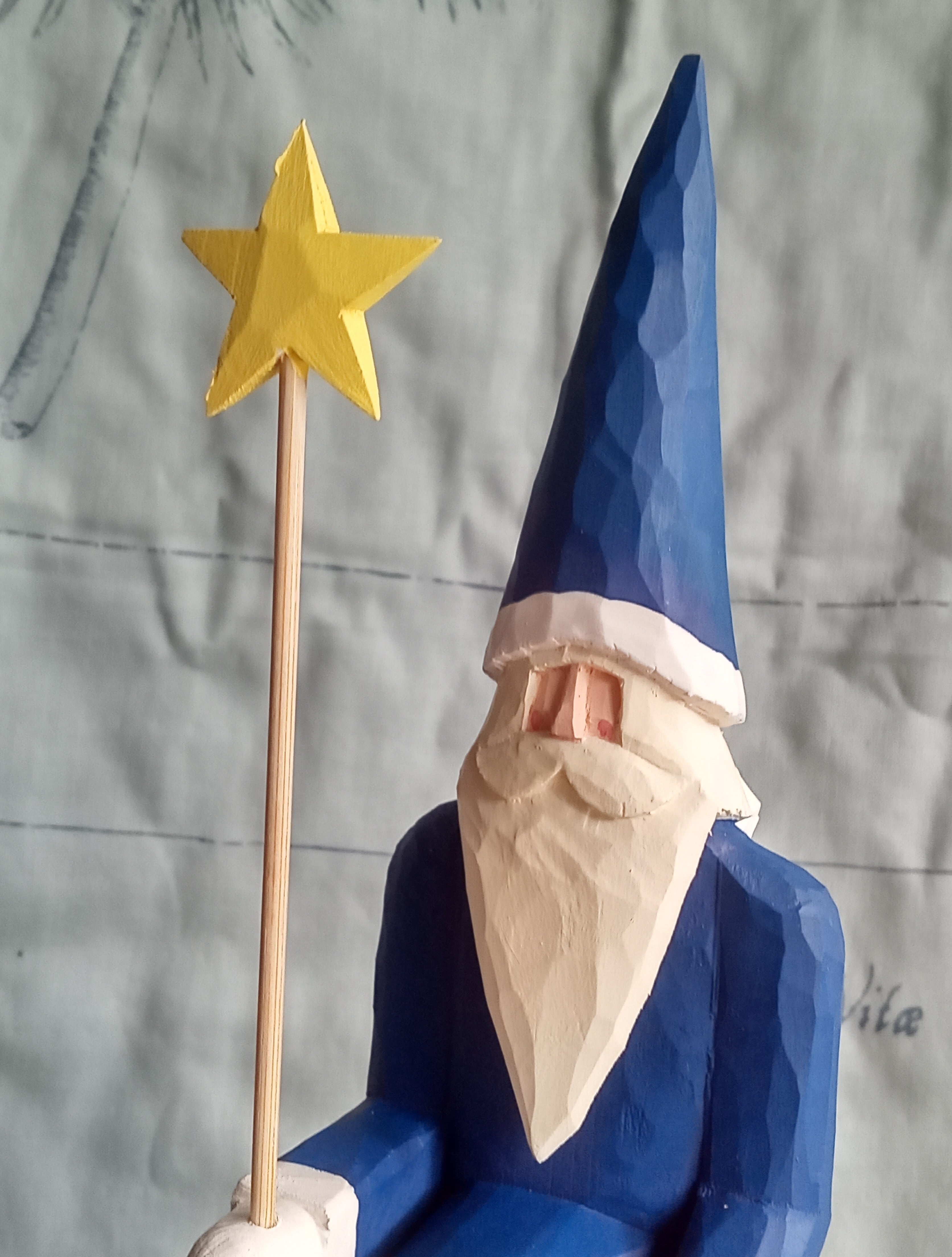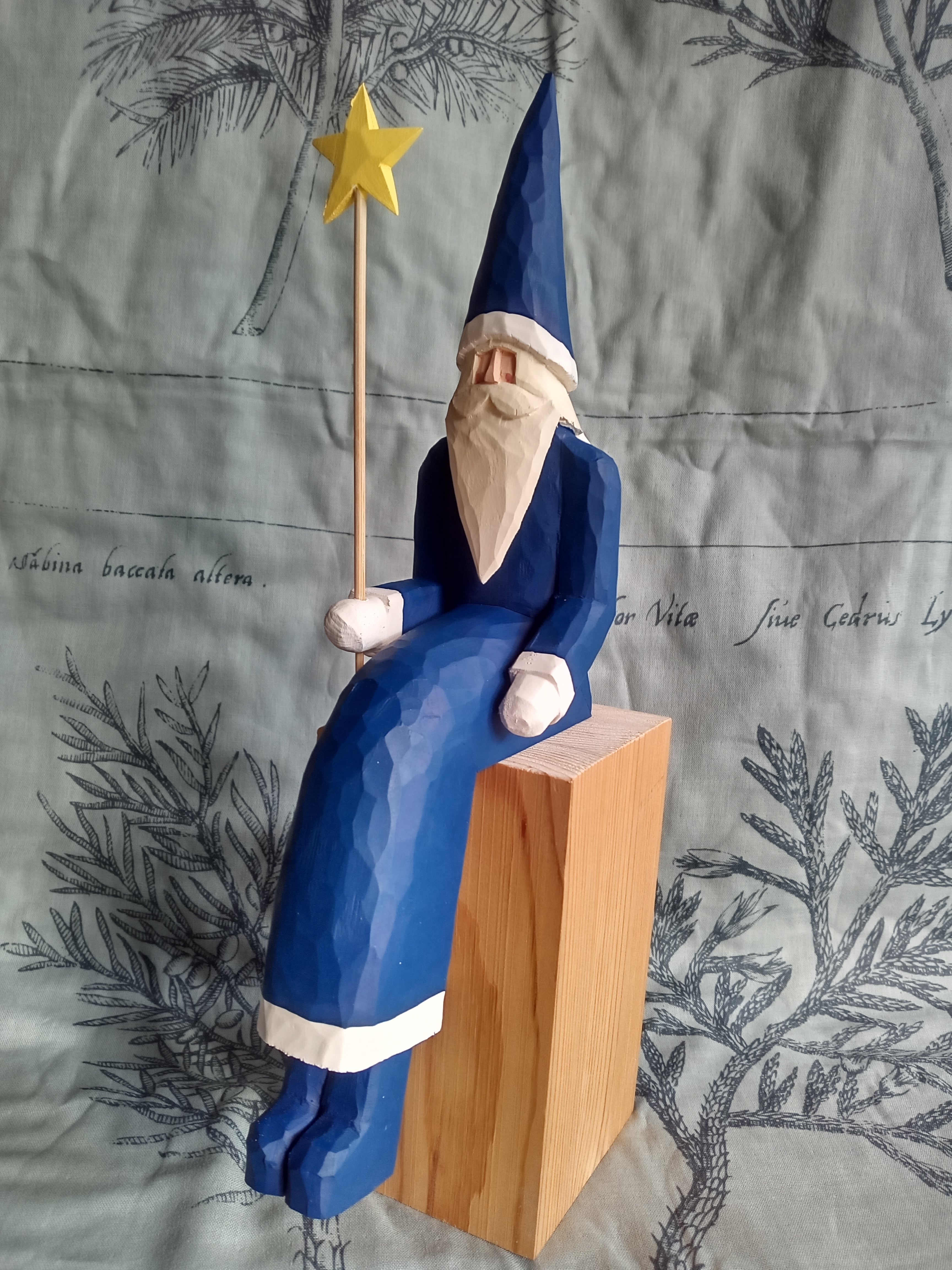 クリスマスの飾り付けや贈り物にぴったりなアイテムです。可愛らしい星を持ったサンタが、見る人にほんのりとした温かさを感じさせます